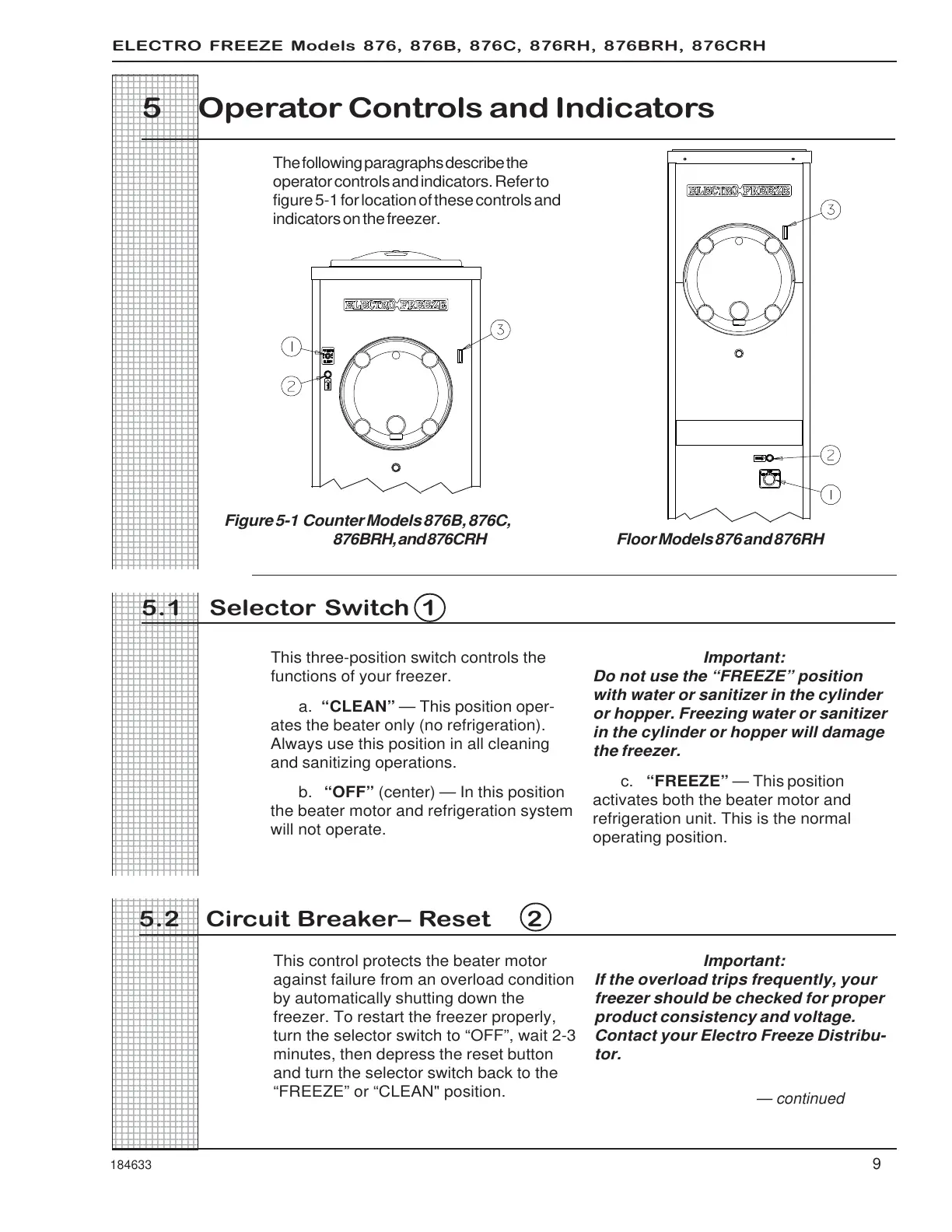 ELECTRO FREEZE Models 876, 876B, 876C, 876RH, 876BRH, 876CRH
