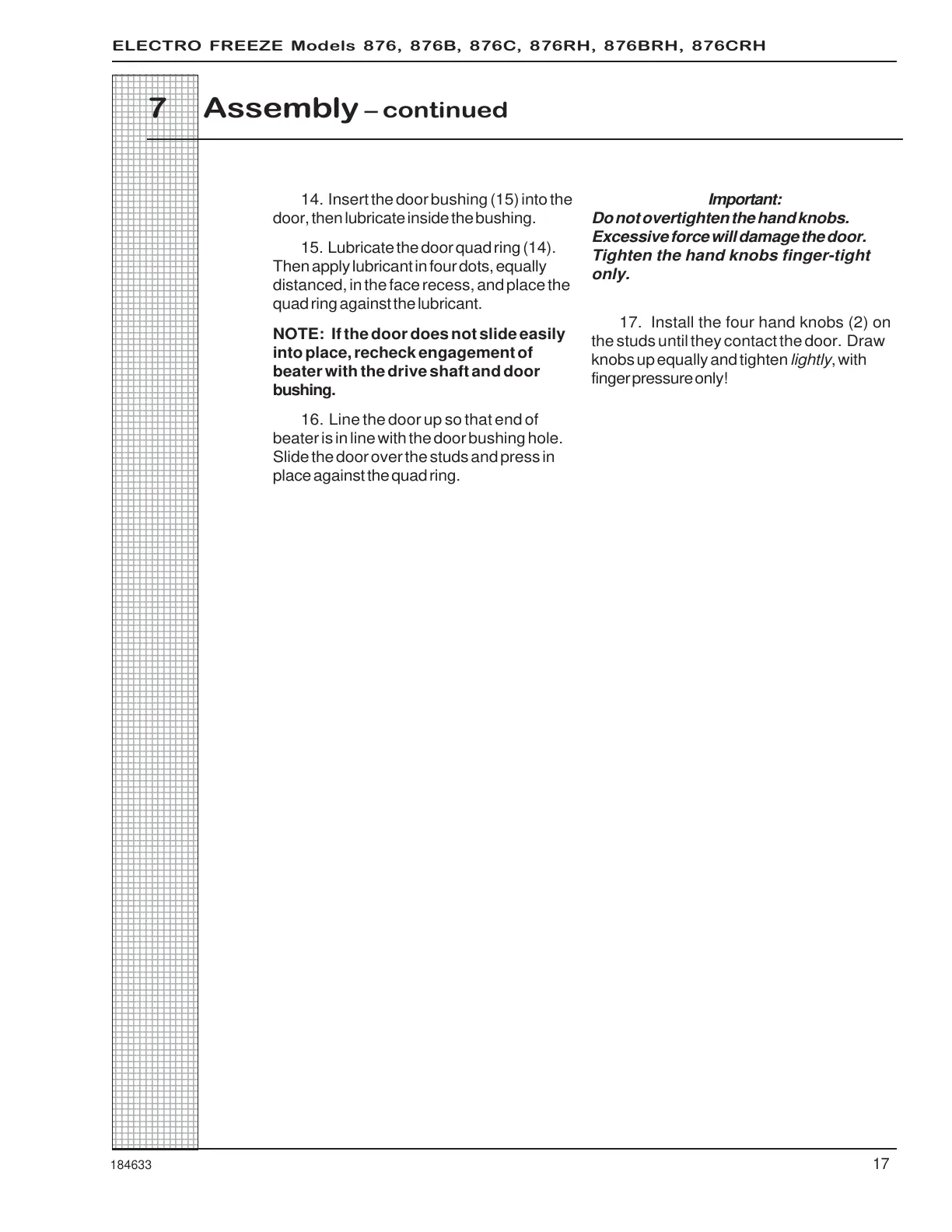 ELECTRO FREEZE Models 876, 876B, 876C, 876RH, 876BRH, 876CRH