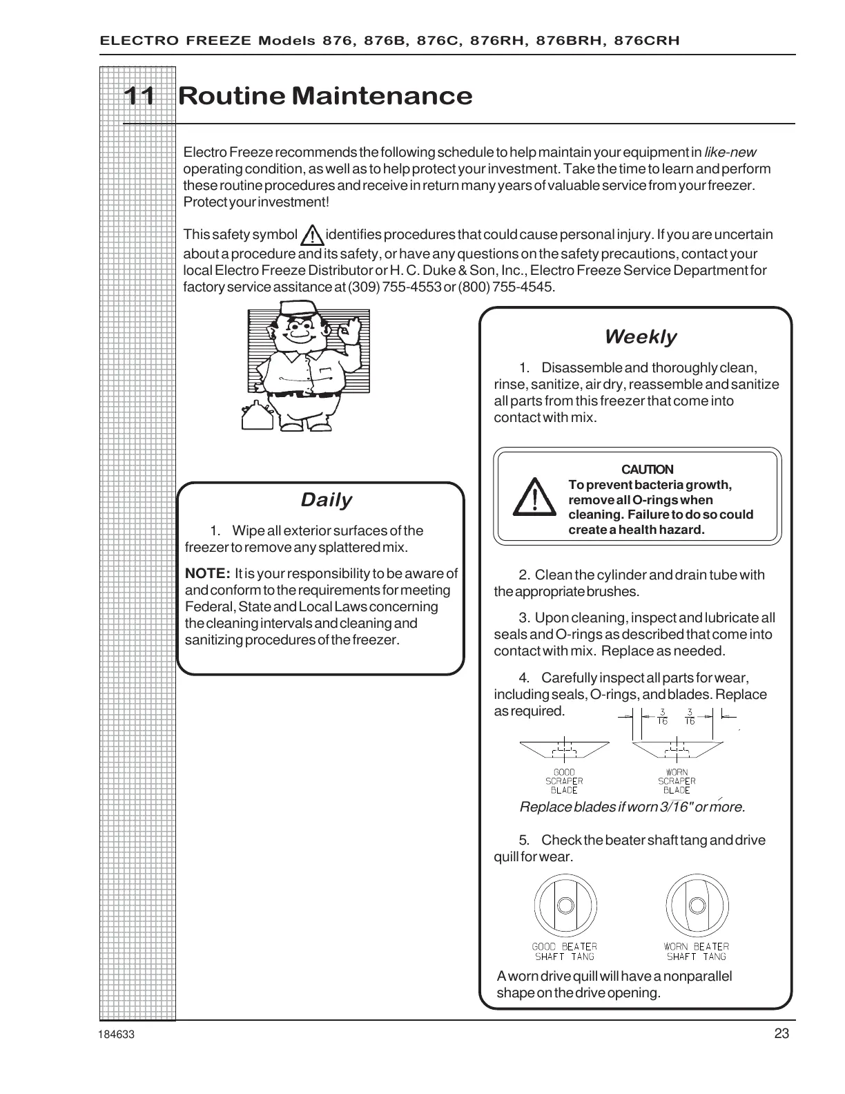 ELECTRO FREEZE Models 876, 876B, 876C, 876RH, 876BRH, 876CRH
