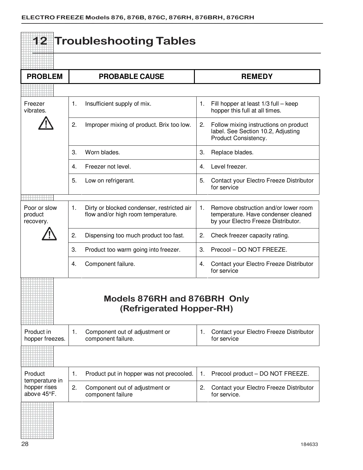 ELECTRO FREEZE Models 876, 876B, 876C, 876RH, 876BRH, 876CRH