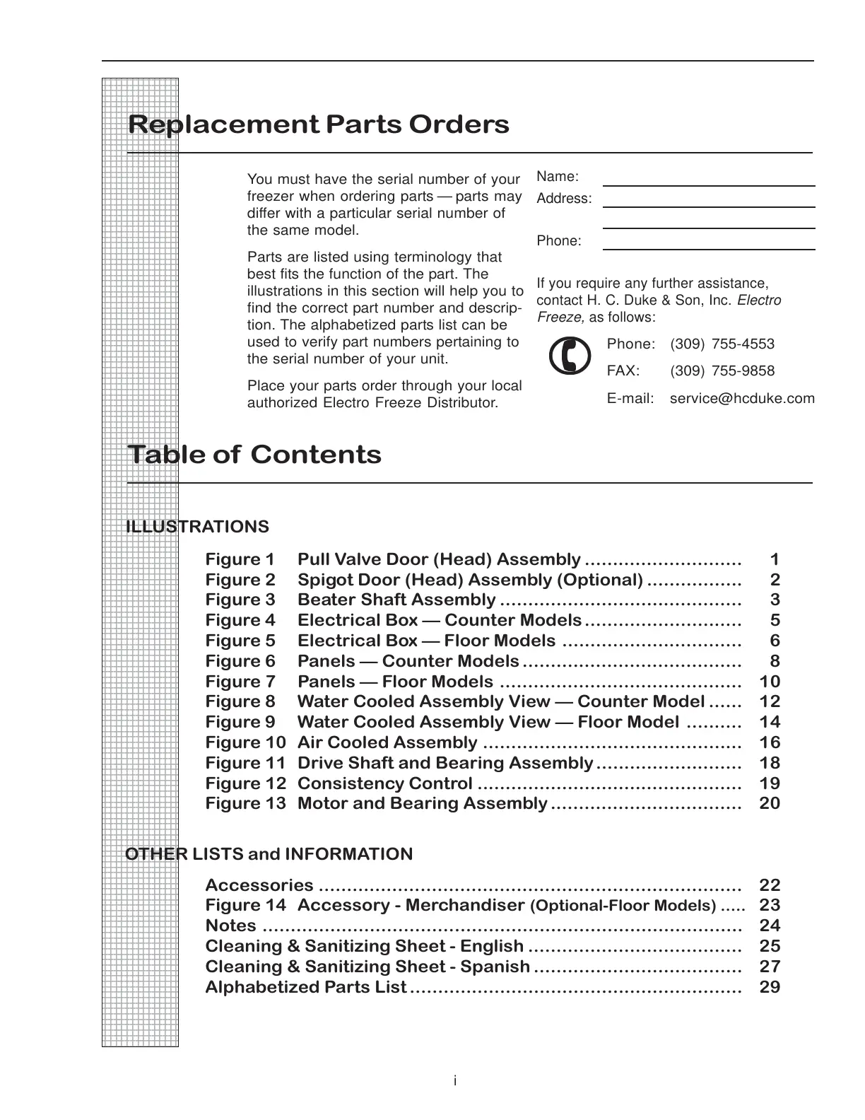 Alphabetized Parts List ........................................................... 29