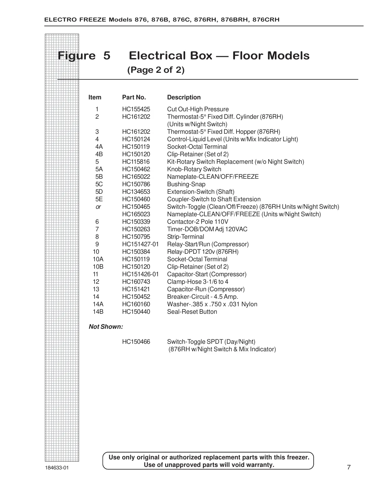 ELECTRO FREEZE Models 876, 876B, 876C, 876RH, 876BRH, 876CRH