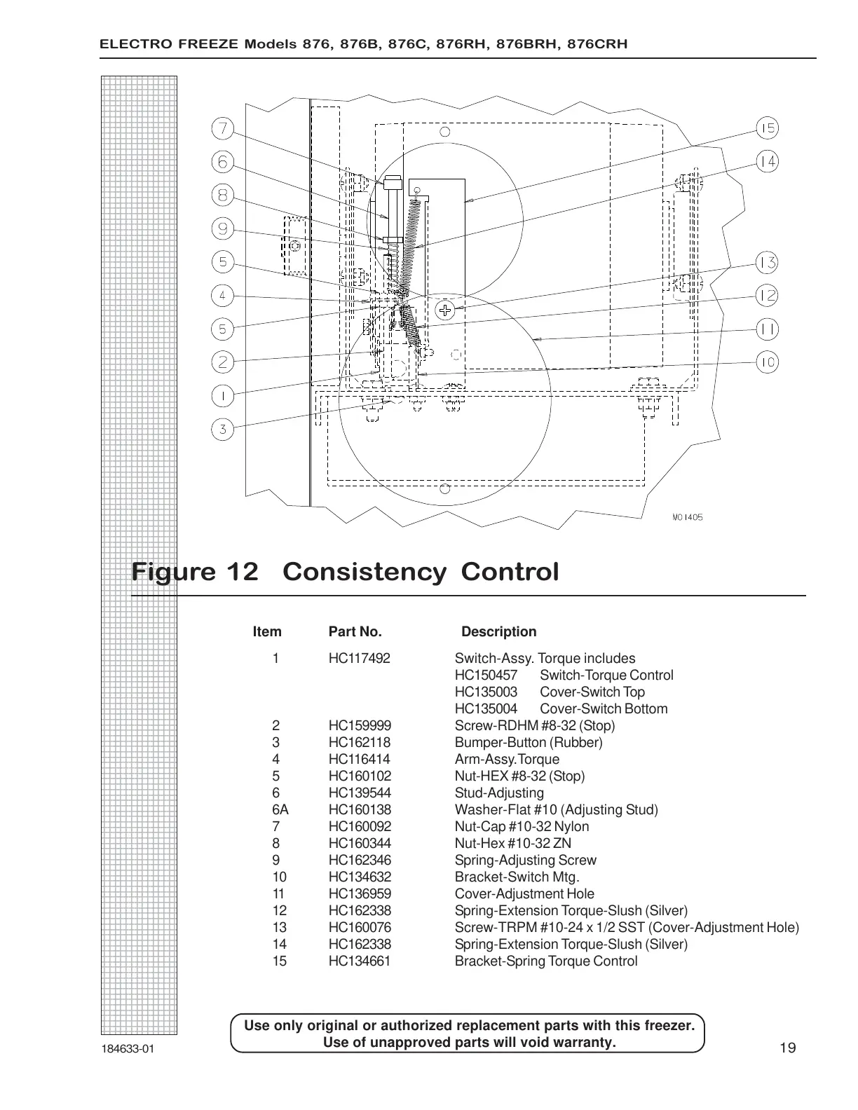 Use only original or authorized replacement parts with this freezer.