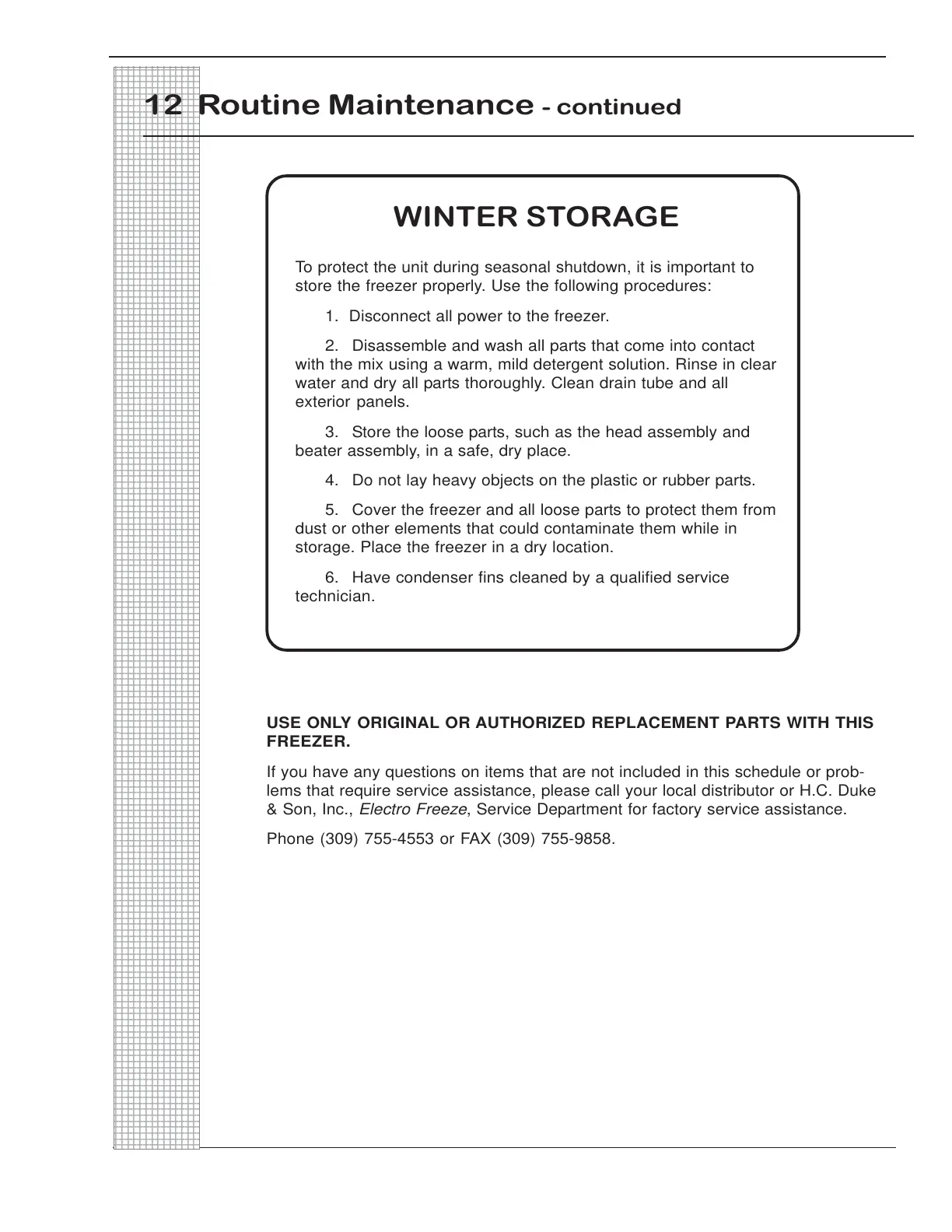 & Son, Inc., Electro Freeze, Service Department for factory service assistance.