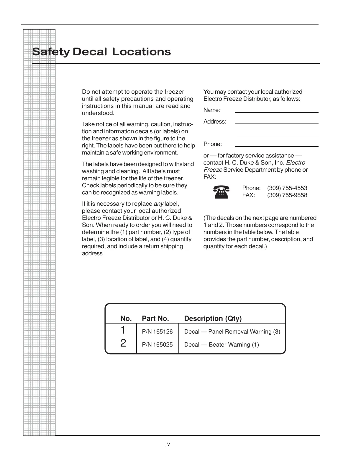 tion and information decals (or labels) on