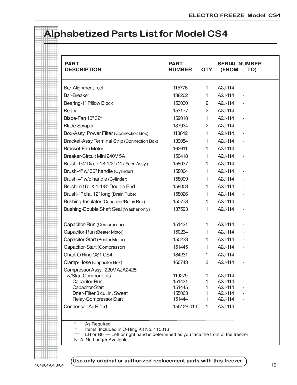 Alphabetized Parts List for Model CS4