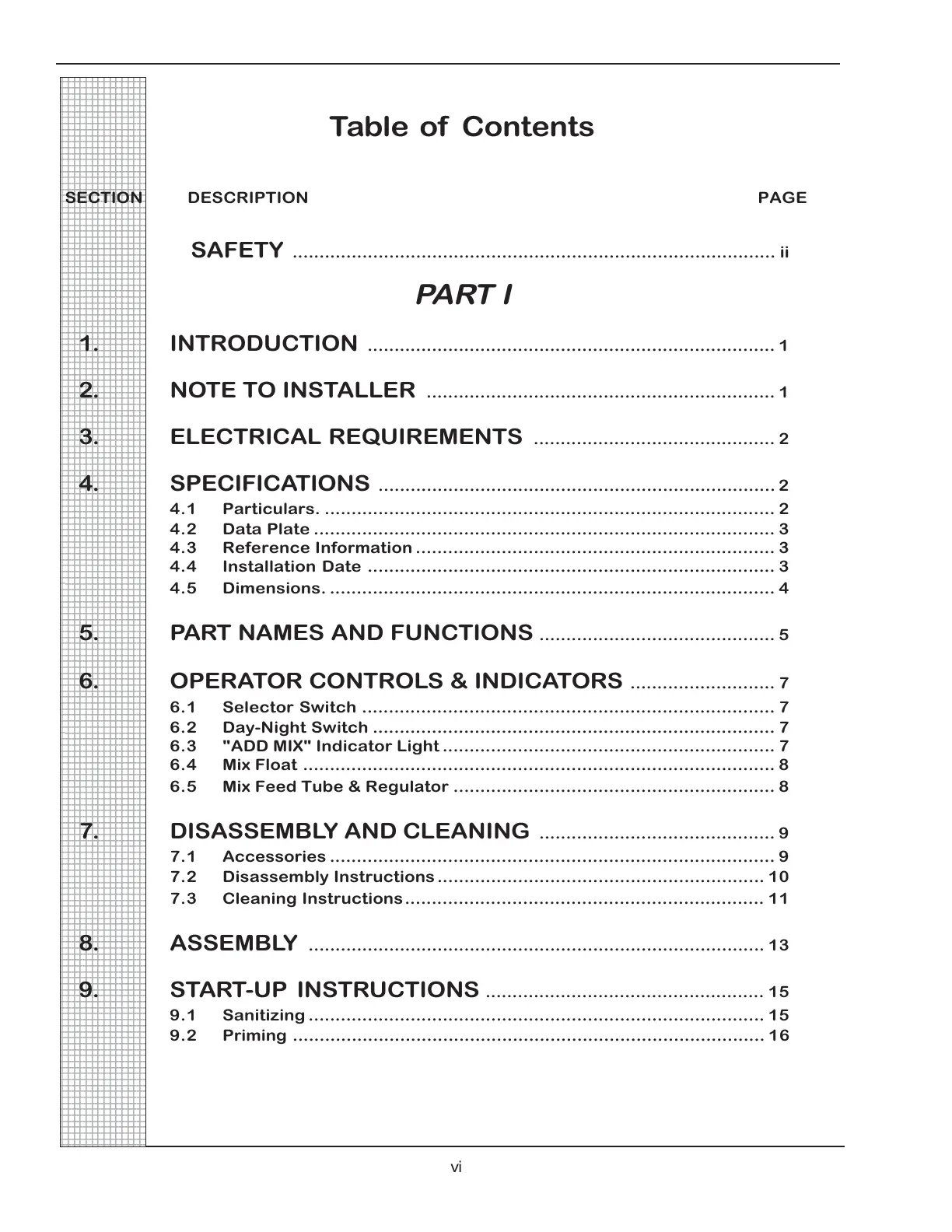 6.5 Mix Feed Tube & Regulator ............................................................ 8