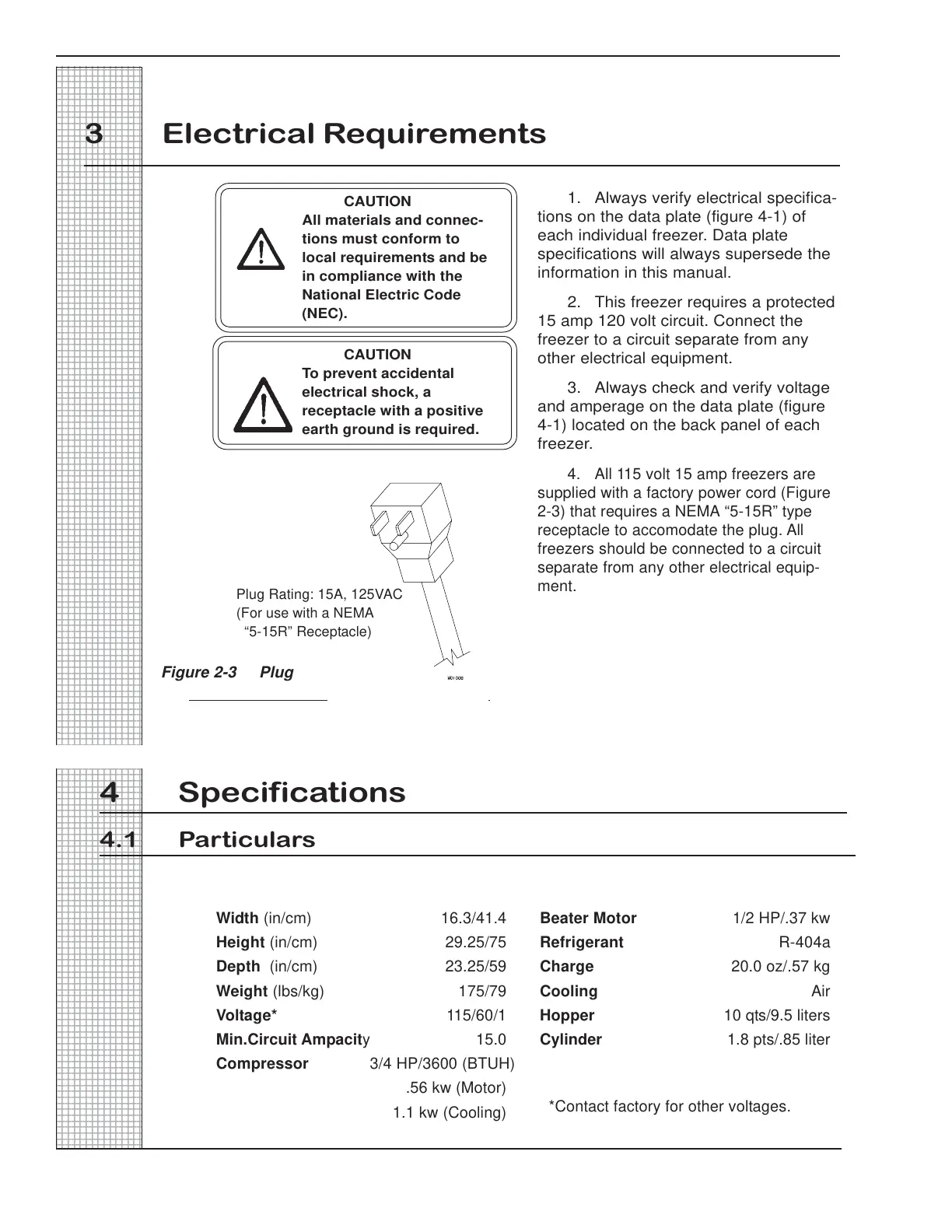 4. All 115 volt 15 amp freezers are