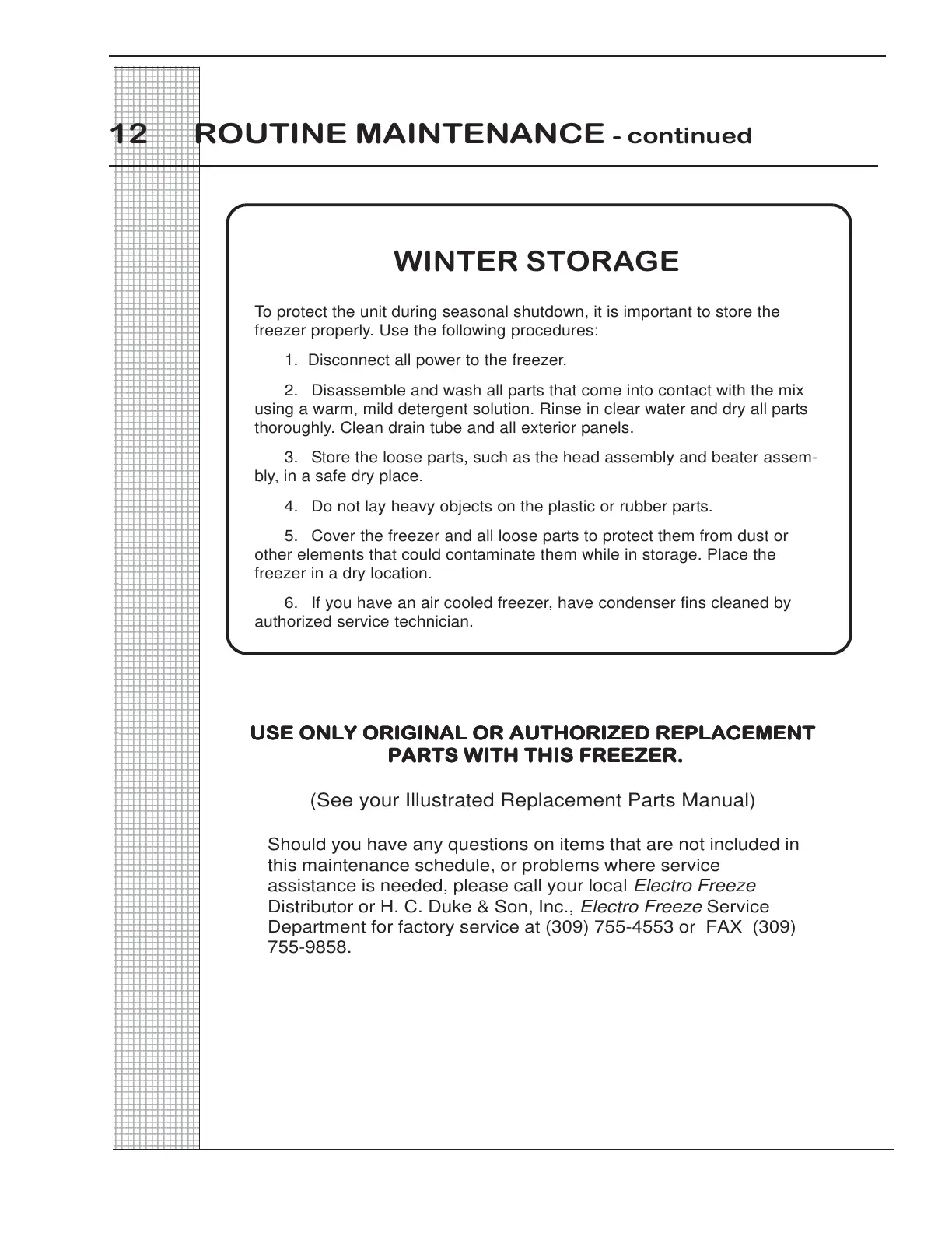 assistance is needed, please call your local Electro Freeze