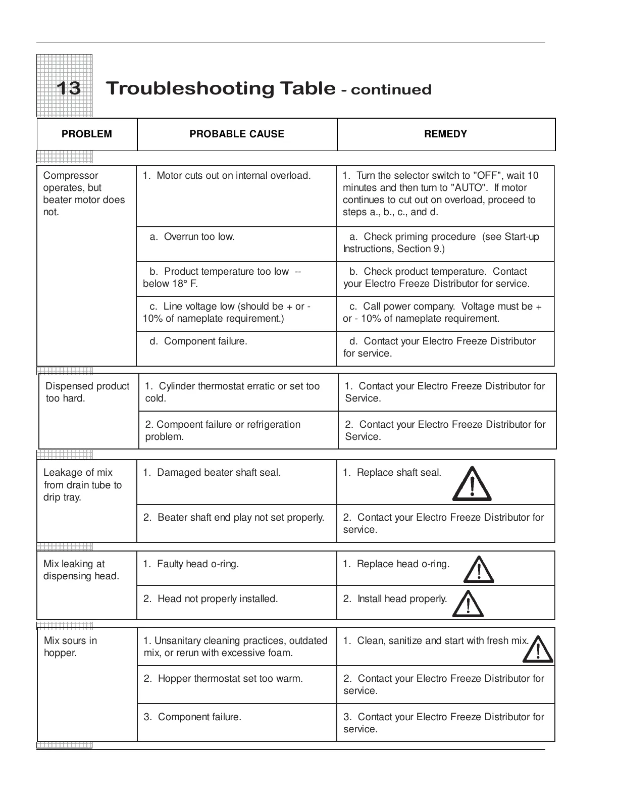 13 Troubleshooting Table - continued