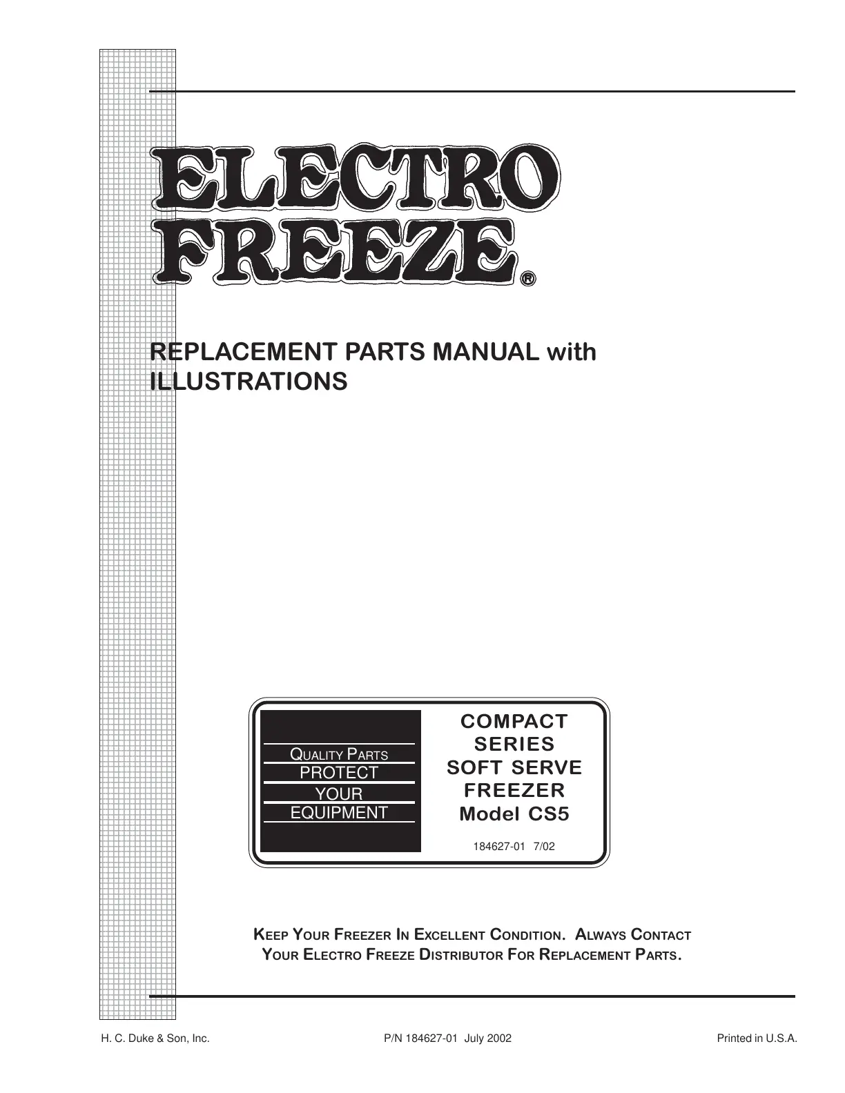 ELECTRO FREEZE cs5 - Replacement Parts Manual