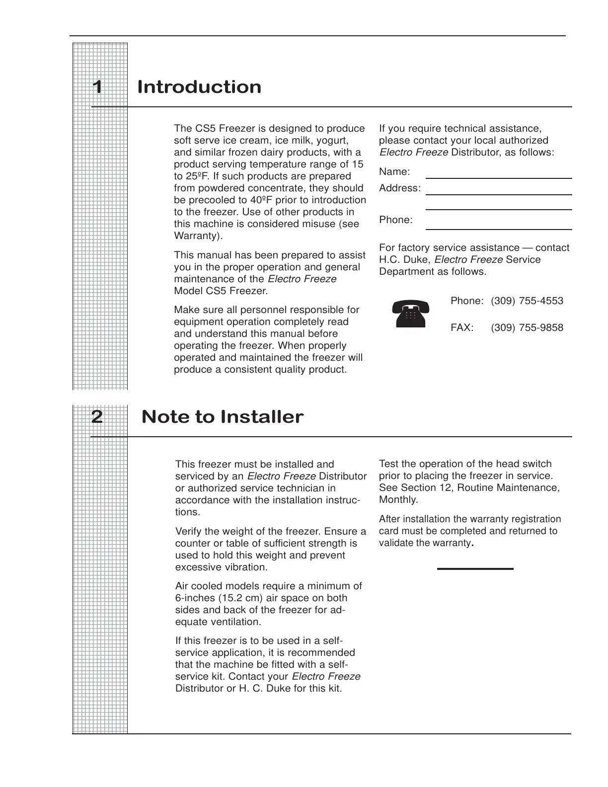 serviced by an Electro Freeze Distributor