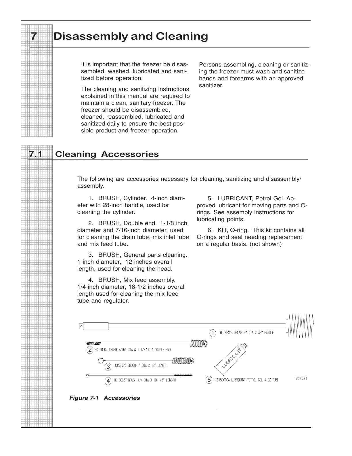 The following are accessories necessary for cleaning, sanitizing and disassembly/