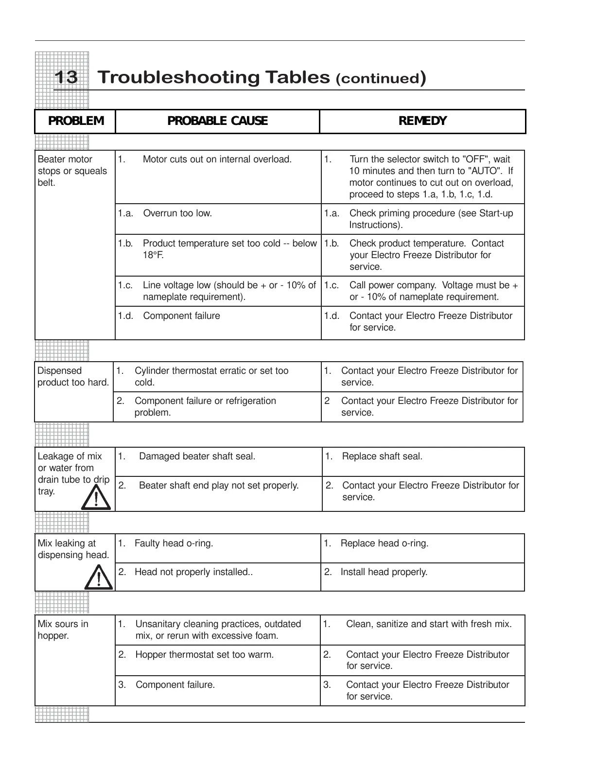 13 Troubleshooting Tables (continued)