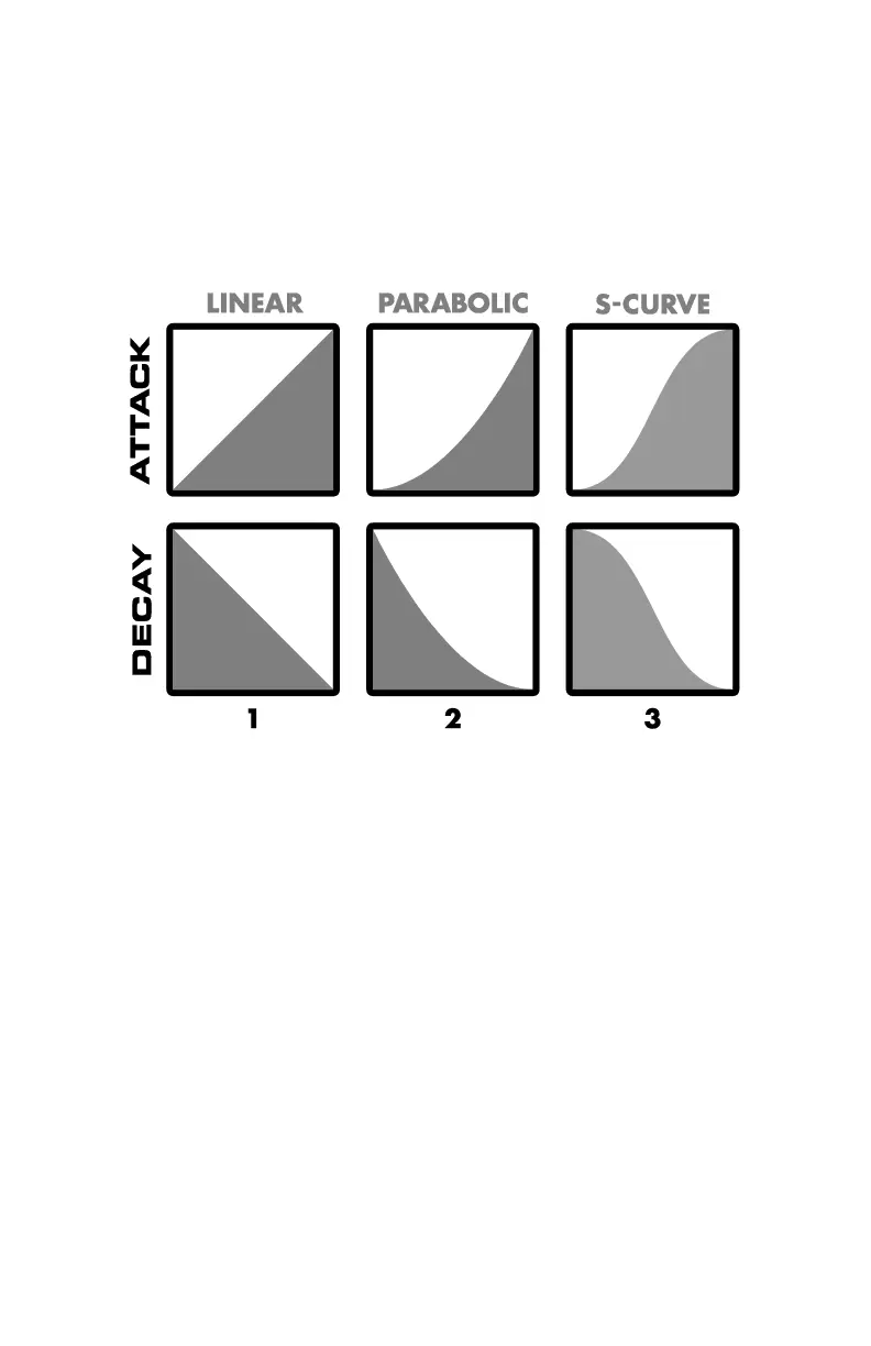 The Attack Decay provides a choice of three different envelope curves for