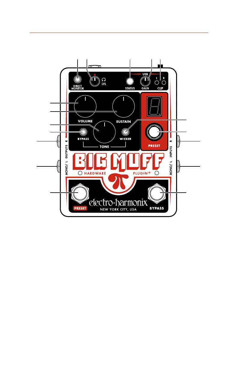 4. USB GAIN Knob Controls the signal level of the audio sent to the computer