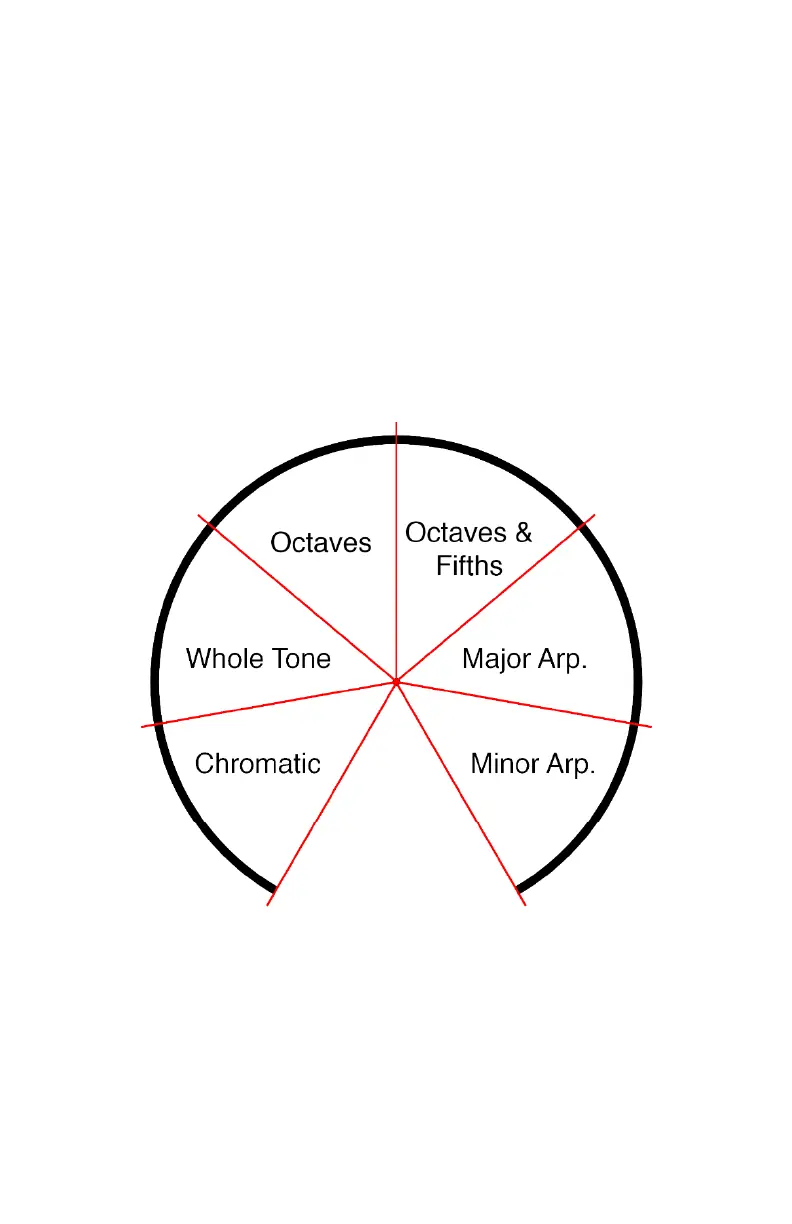 scale, octaves, octaves & fifths, major arpeggio, and minor arpeggio. The