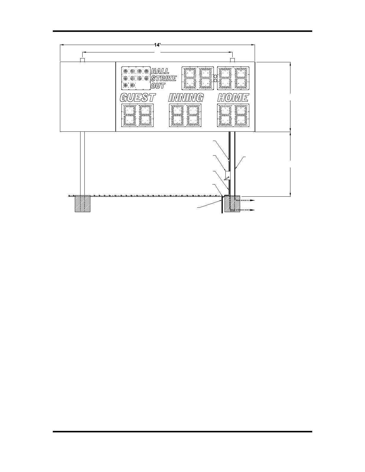 Figure 3 shows the spacing of the posts for a 1360 scoreboard with an optional top