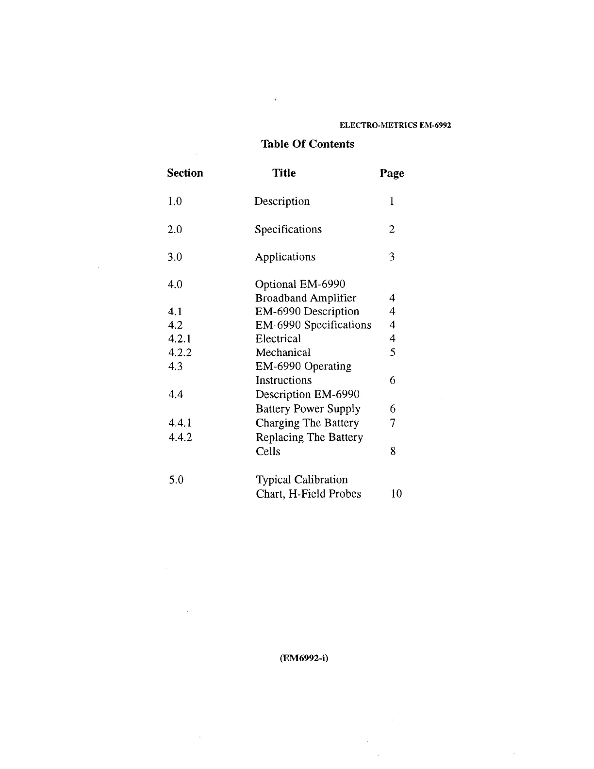 Electro-Metrics EM-6992 - Table of Contents