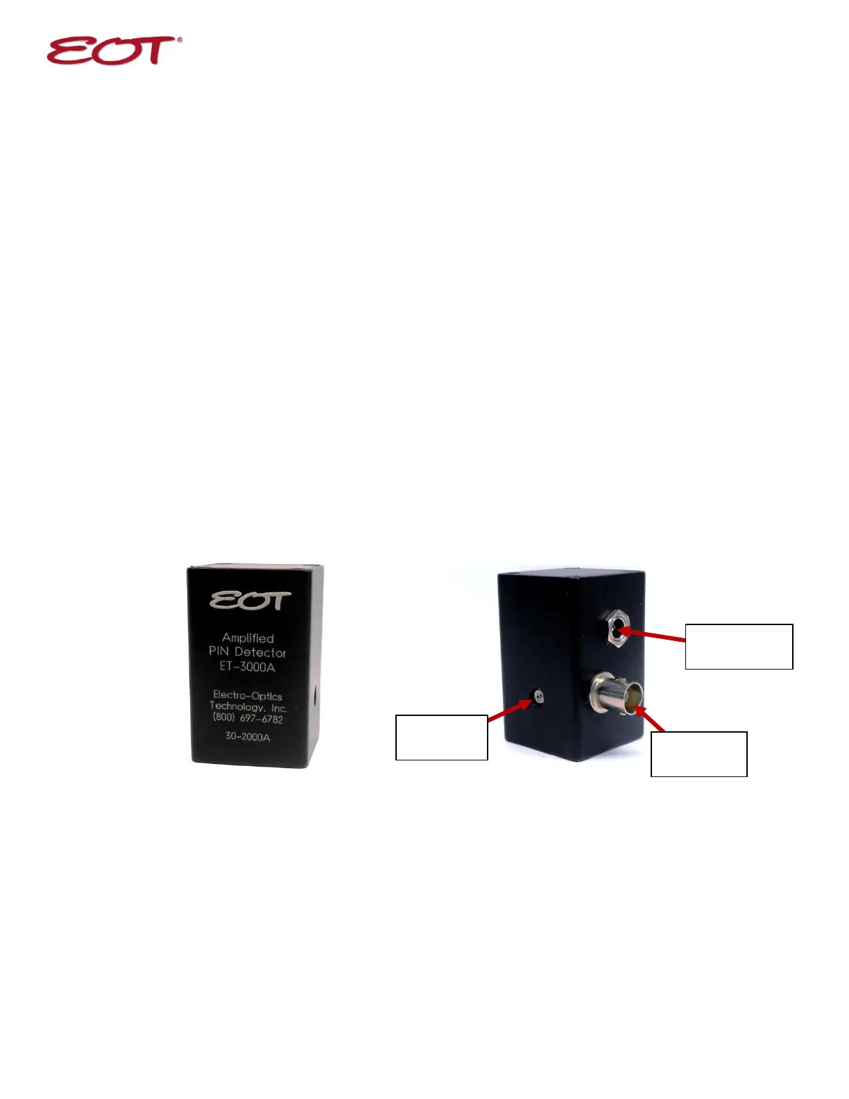 Thank you for purchasing your Amplified Photodetector from EOT. This user guide will help