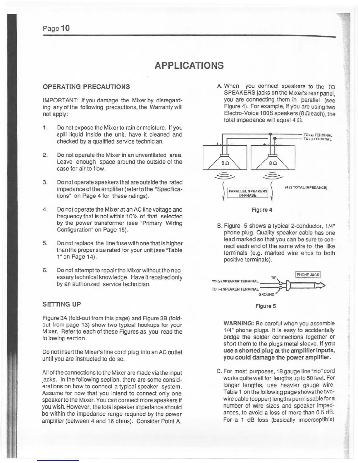 Electro-Voice 61PM - Applications; Operating Precautions; Setting Up the Mixer
