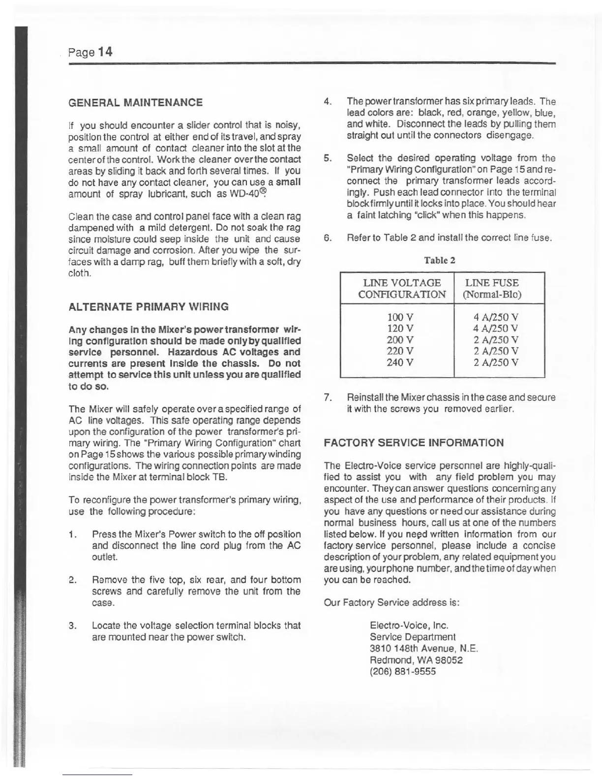 Electro-Voice 61PM - Alternate Primary Wiring Procedure; Rewiring Procedure Steps