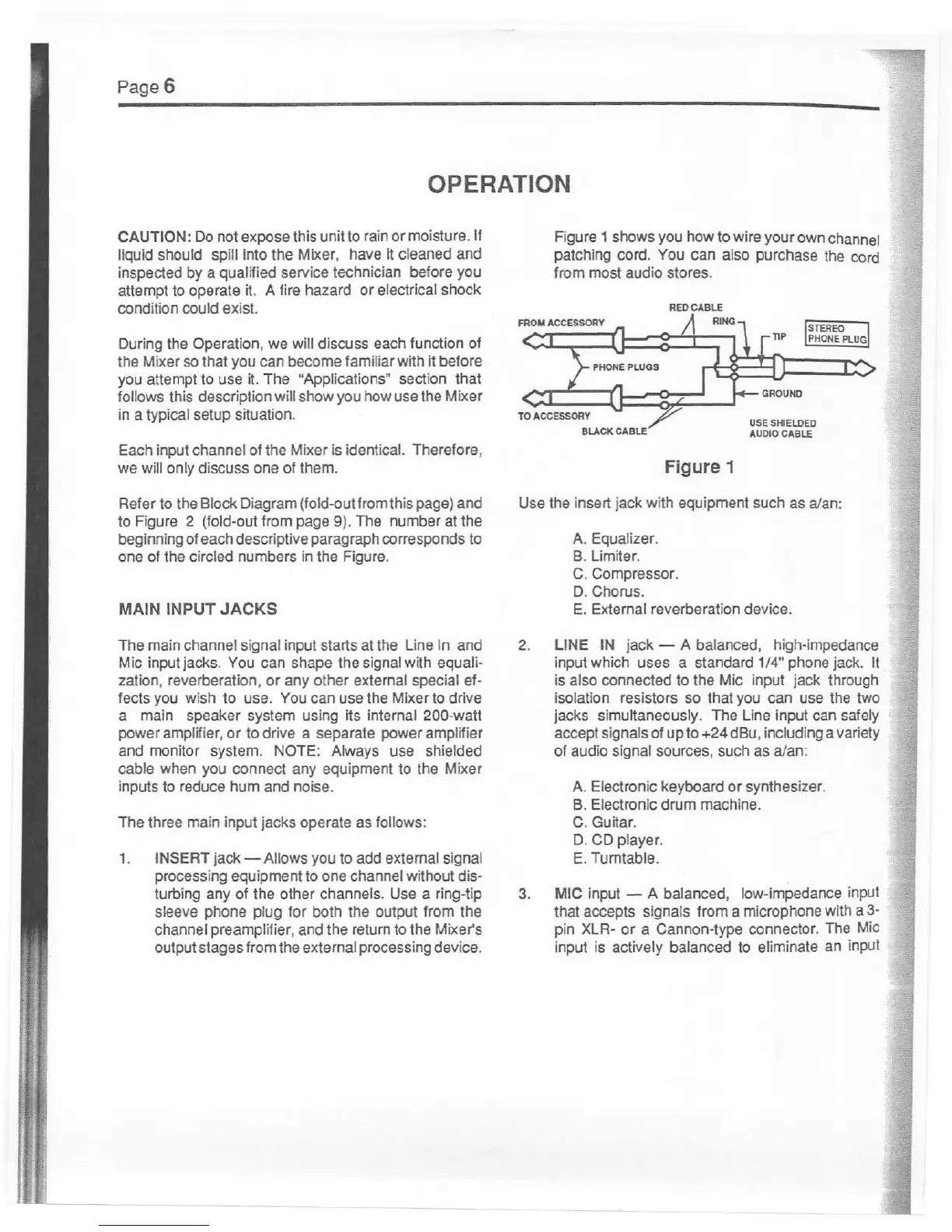 Electro-Voice 61PM - Operation; Main Input Jacks