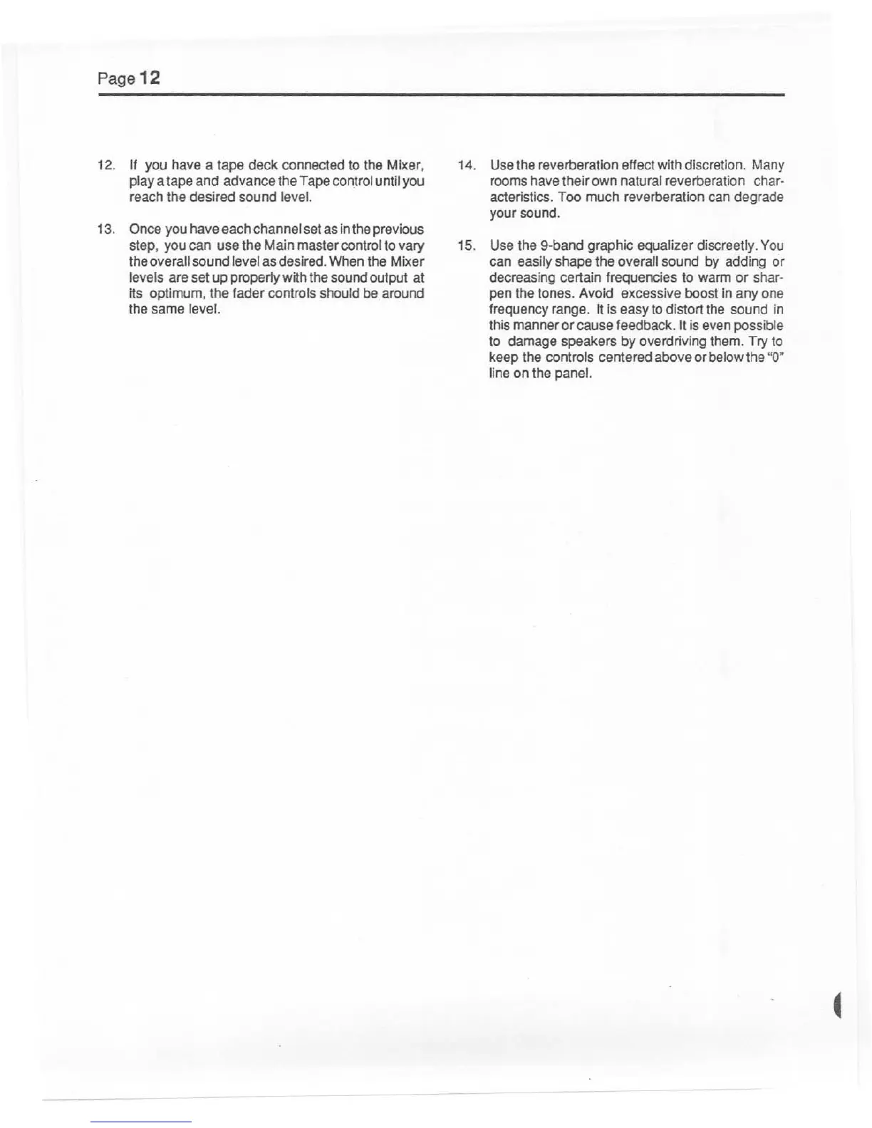 Electro-Voice 61PMX - Advanced Operation and Fine-Tuning; Tape Level Adjustment; Main Master Volume Control; Reverberation Effect Usage