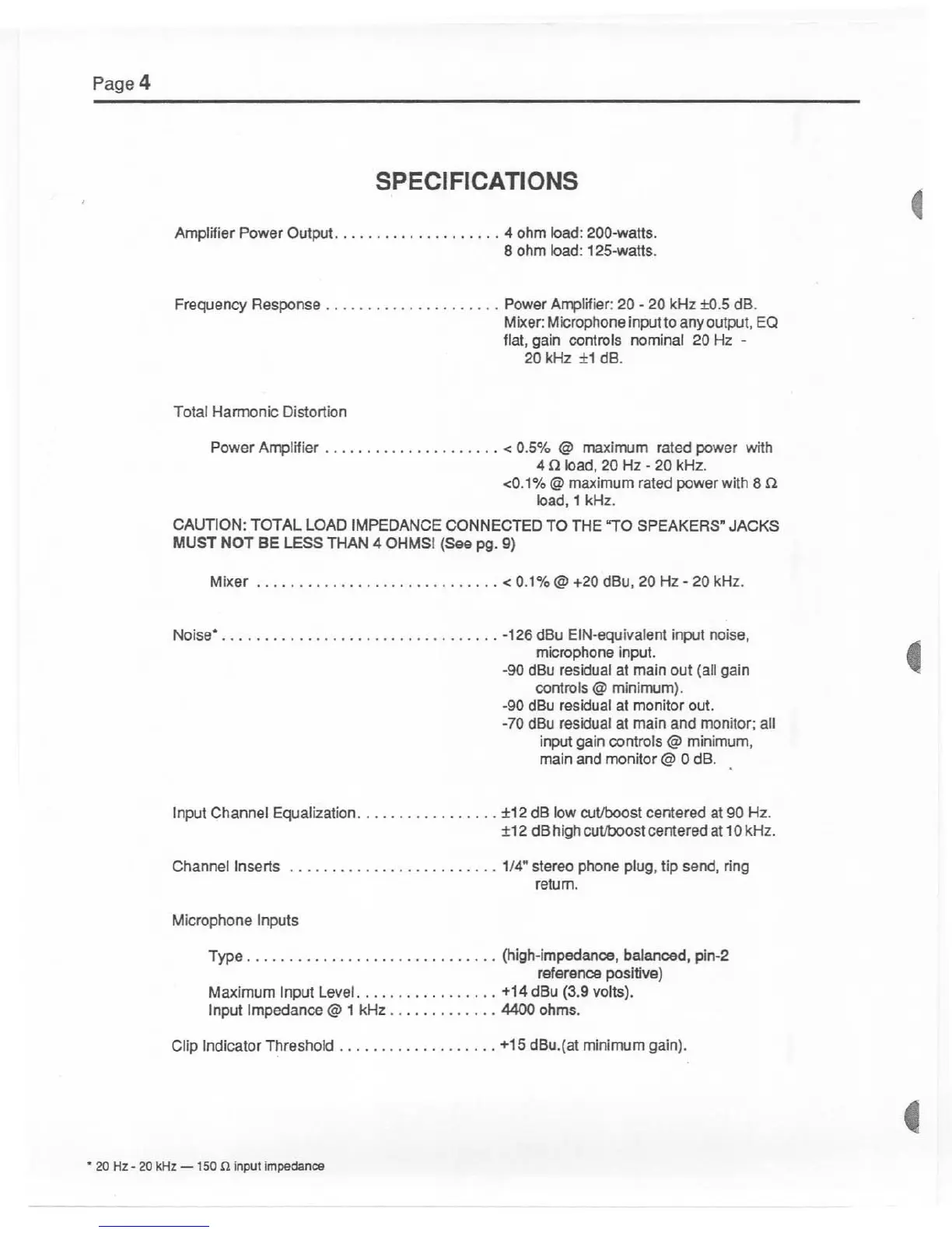 Electro-Voice 61PMX - Technical Specifications; Amplifier Power Output; Frequency Response; Total Harmonic Distortion