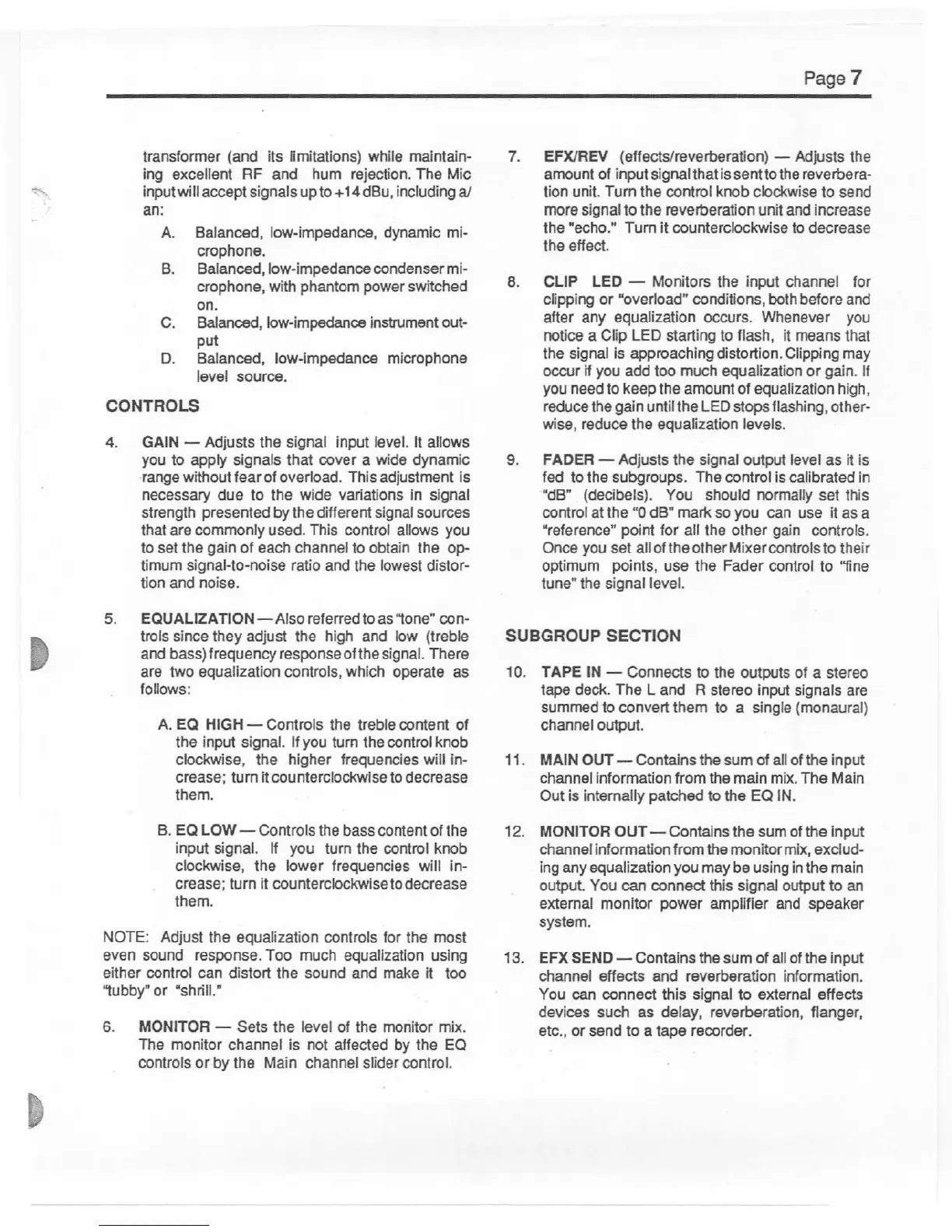 Electro-Voice 61PMX - Control Descriptions; Gain Control Operation; Equalization Controls; EQ High Frequency Control