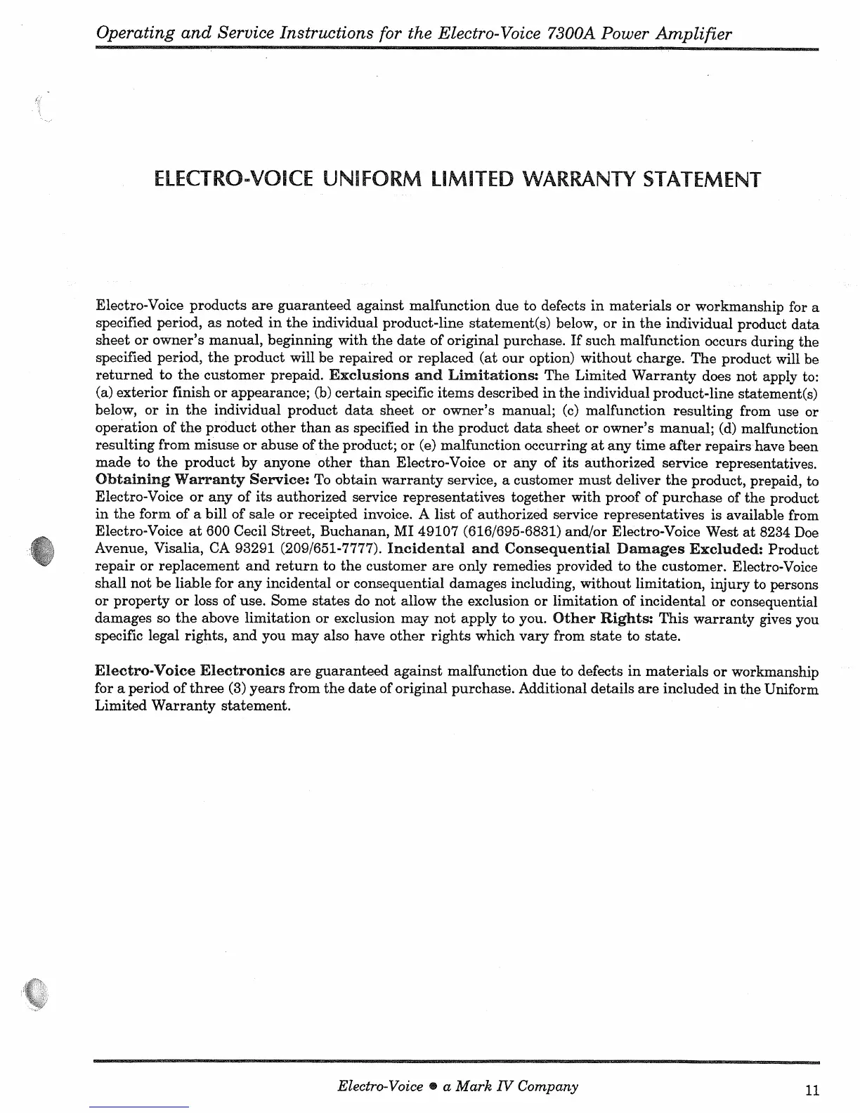 Other manuals for Electro-Voice 7300A