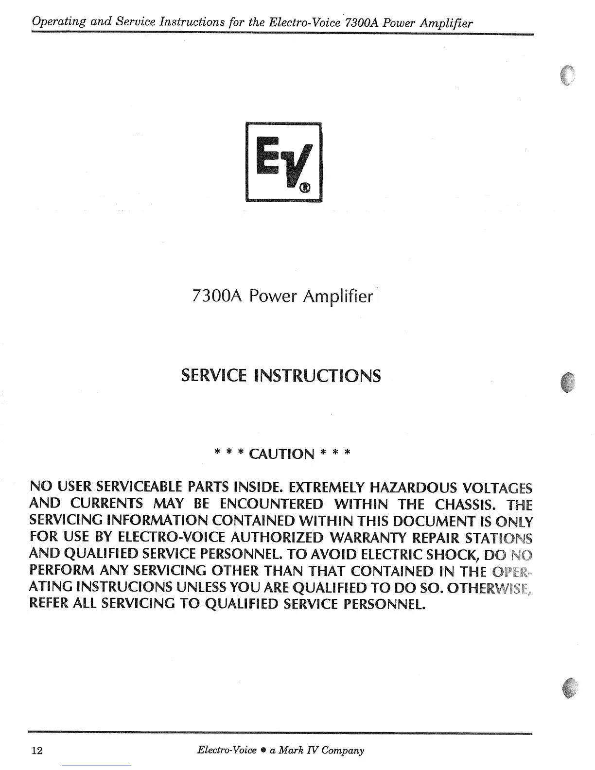Other manuals for Electro-Voice 7300A