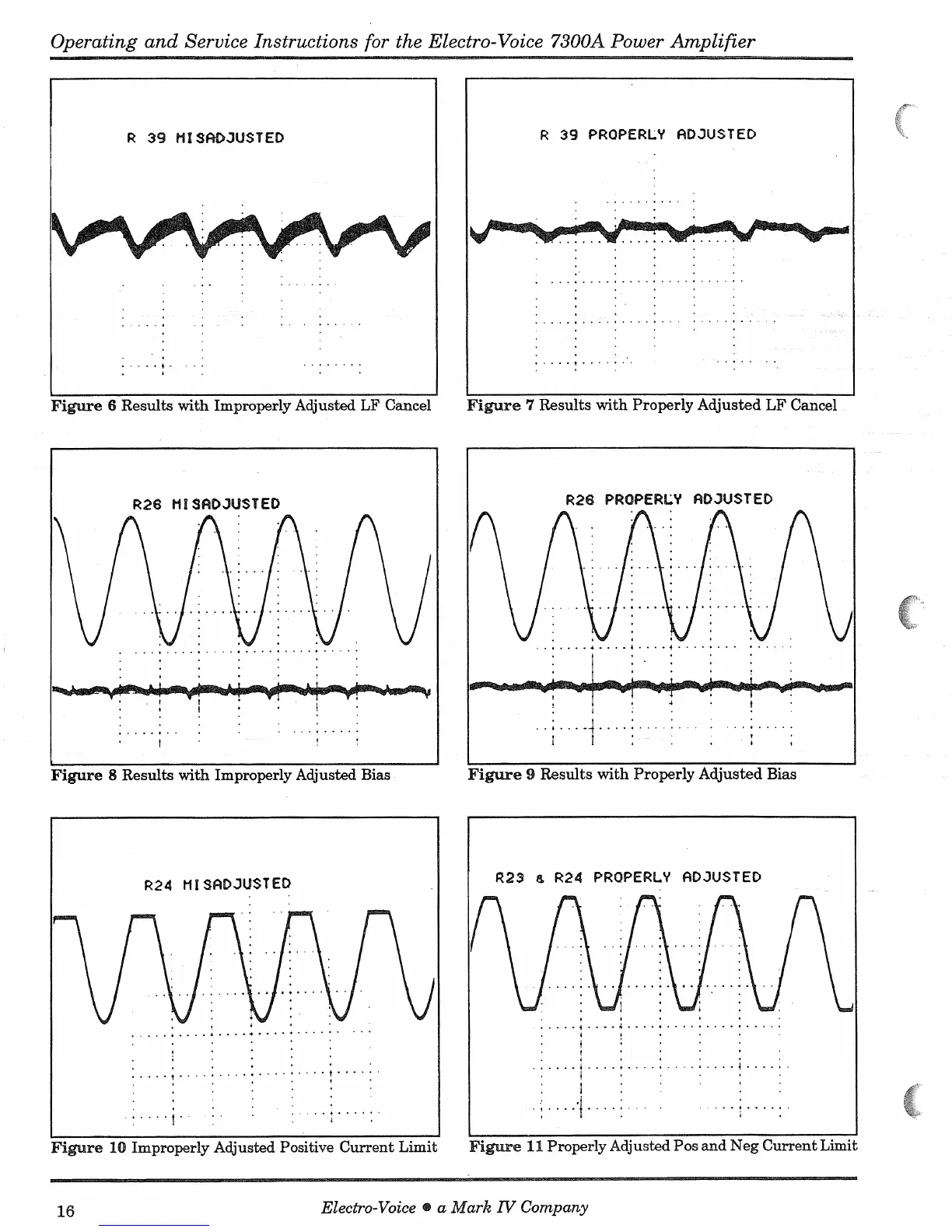 Electro-Voice 7300A - Results with Improperly and Properly Adjusted LF Cancel; Results with Improperly and Properly Adjusted Bias; Improperly Adjusted Positive Current Limit; Properly Adjusted Pos and Neg Current Limit