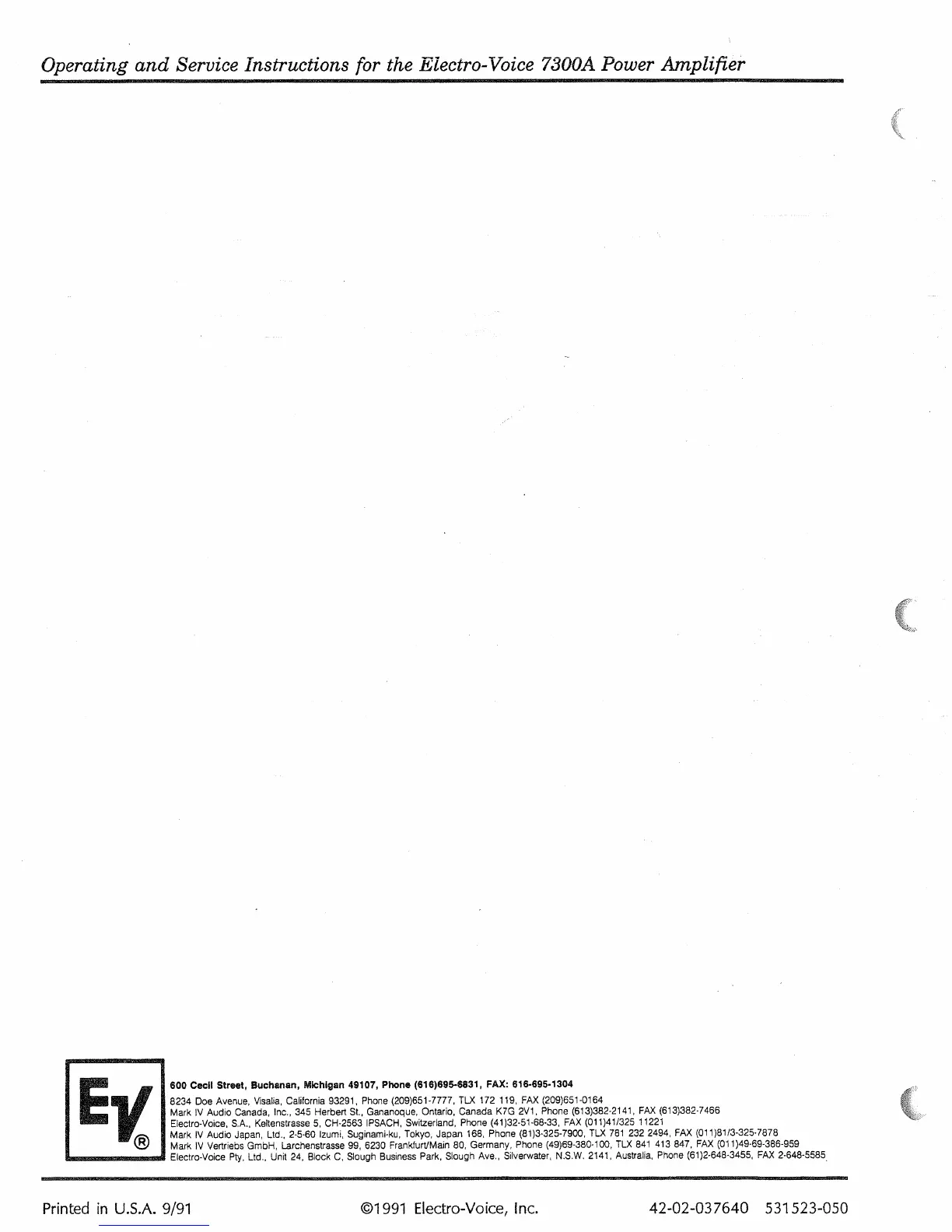 Other manuals for Electro-Voice 7300A