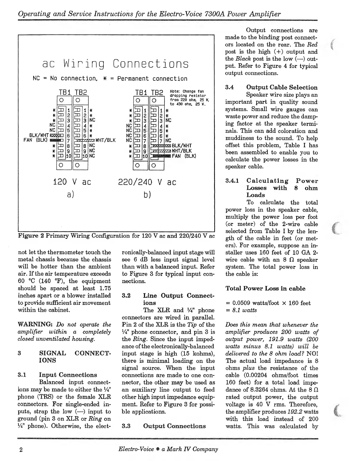 Electro-Voice 7300A - Signal Connections; O O; Q Q; Q a