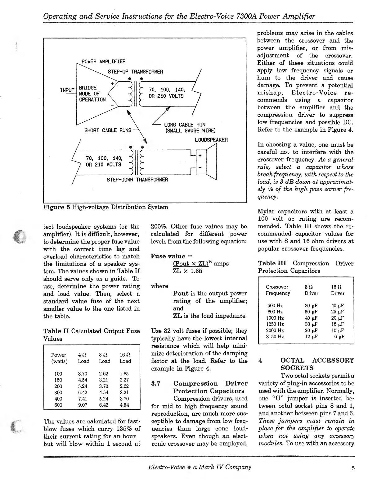 Electro-Voice 7300A - Compression Driver Protection Capacitors; Octal Accessory Sockets