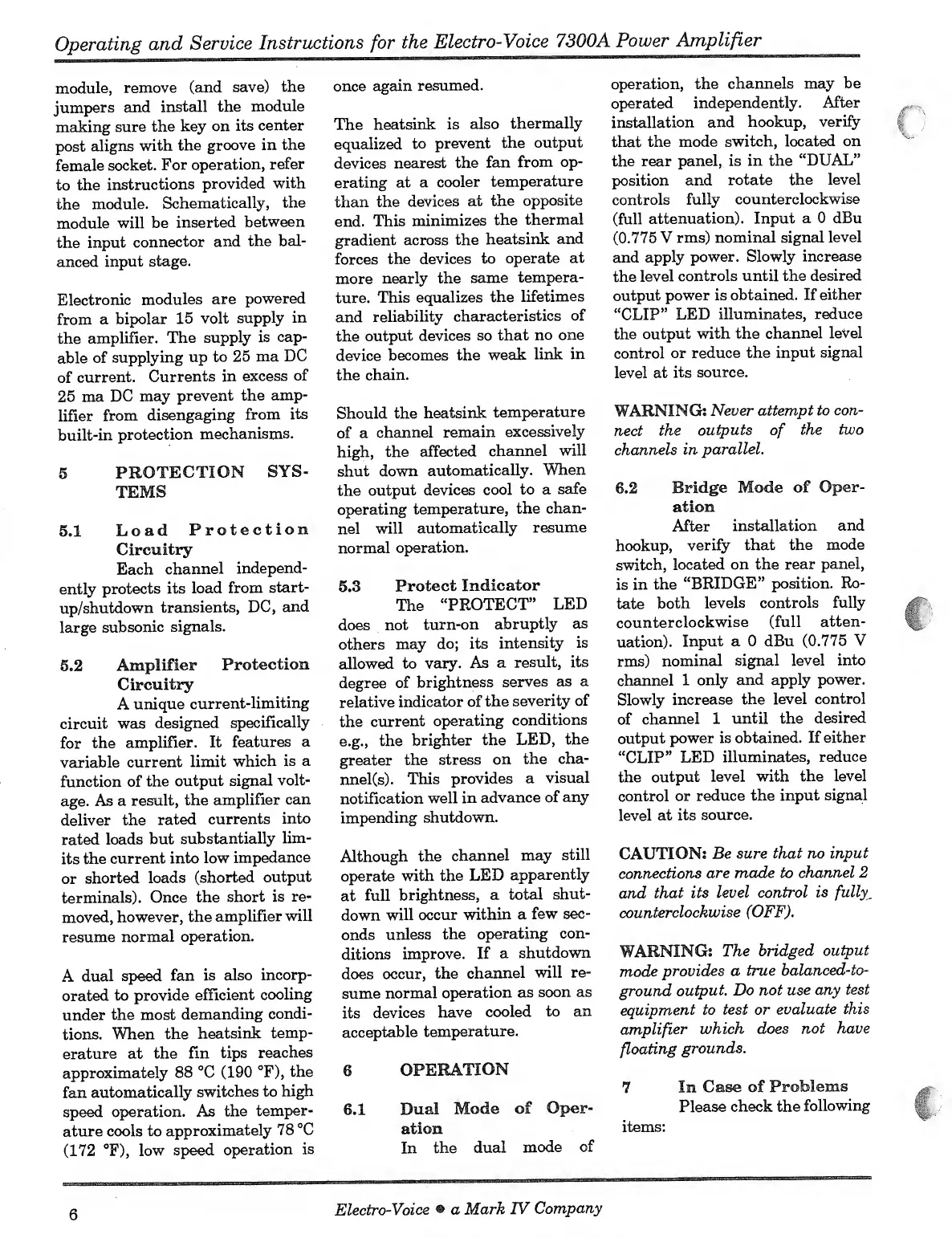 Electro-Voice 7300A - PROTECTION SYSTEMS; Load Protection Circuitry; Amplifier Protection Circuitry