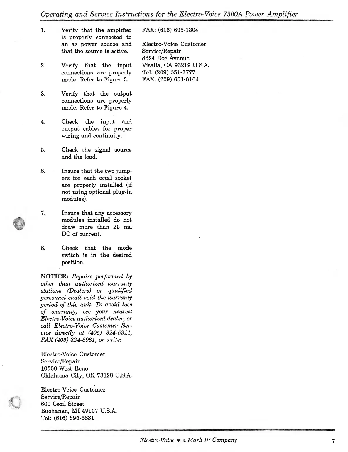 Electro-Voice 7300A - OPERATION; Dual Mode of Operation; Bridge Mode of Operation