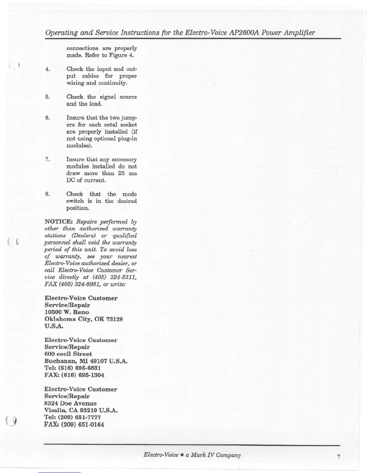 Electro-Voice AP2600A - Troubleshooting Common Issues