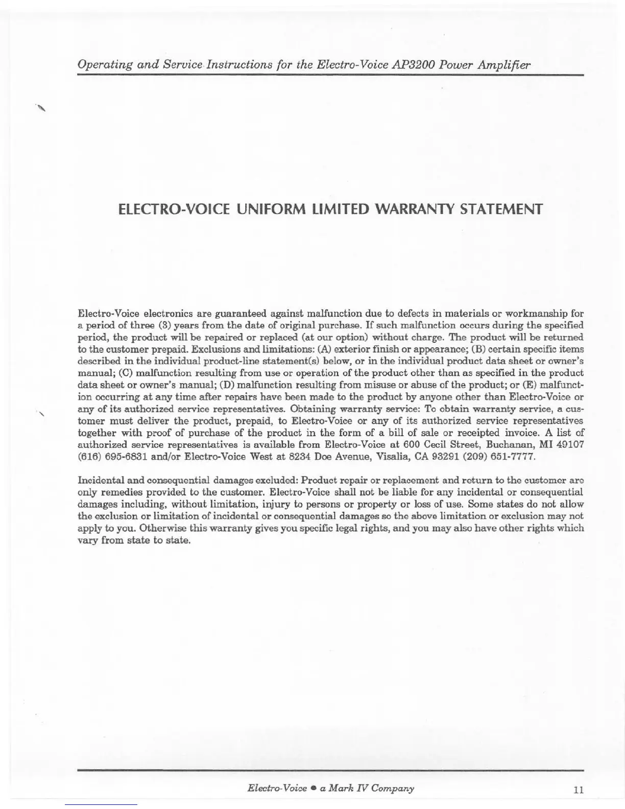 Other manuals for Electro-Voice AP3200