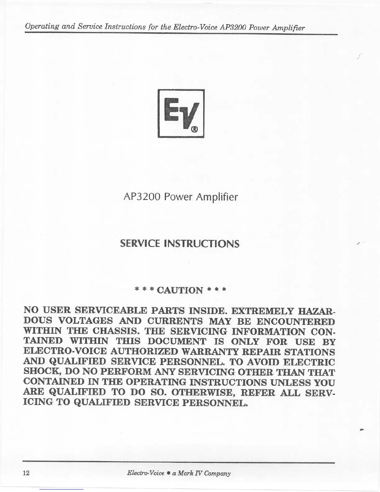 Electro-Voice AP3200 - Service Information and Adjustments; 9.1 Trimpot Adjustments Overview; 9.2 Equipment Needed for Adjustments