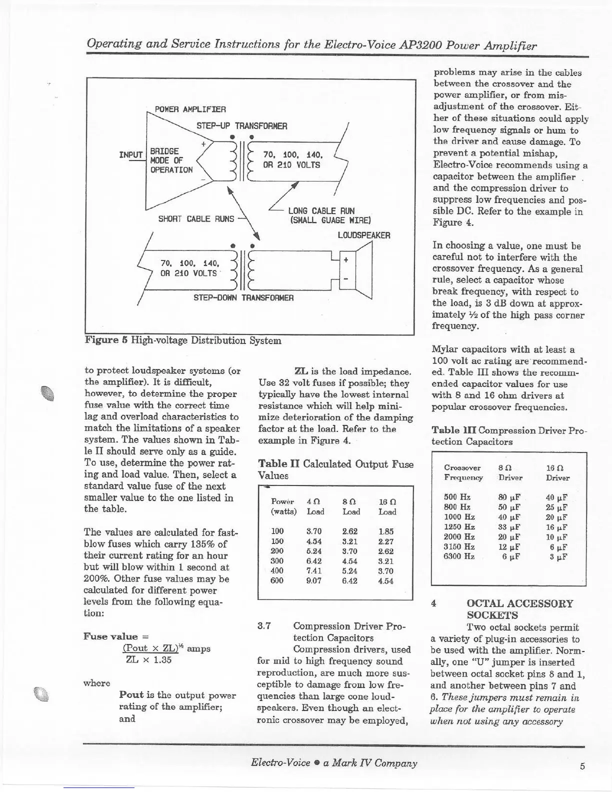 Electro-Voice AP3200 - 3.7 Compression Driver Protection Capacitors; Octal Accessory Sockets