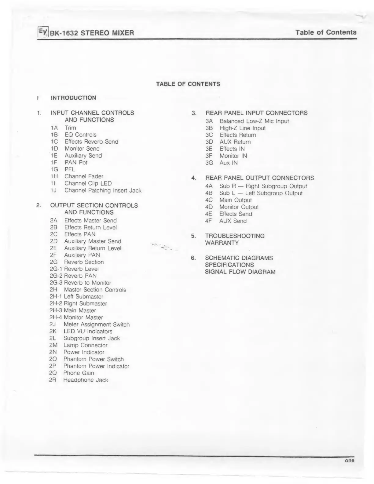 Electro-Voice BK-1632 - Table of Contents