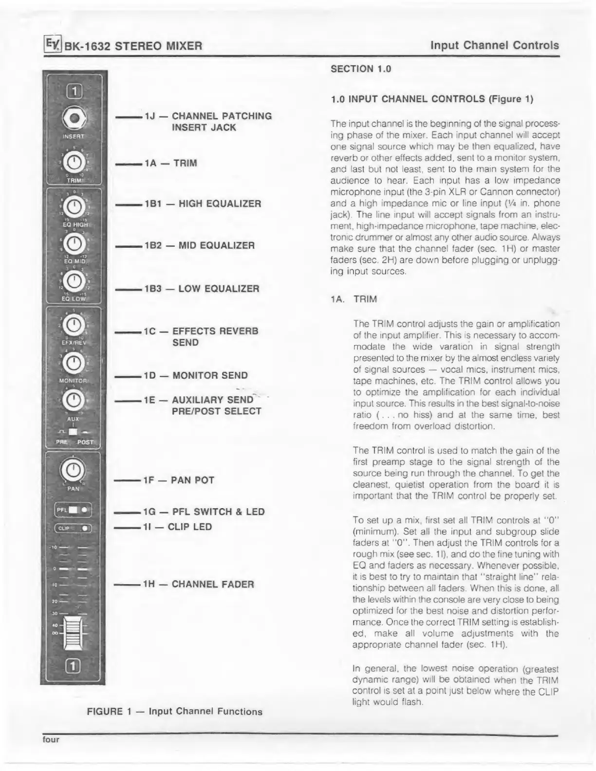 Electro-Voice BK-1632 - Bk-1632 Stereo Mixer; Input Channel Controls; Trim