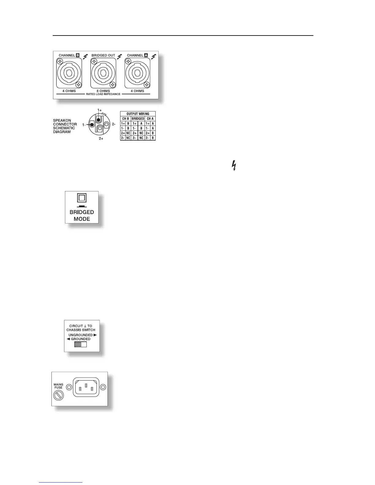 Les broches 2+/2- de la sortie CHANNEL A SPEAKON,