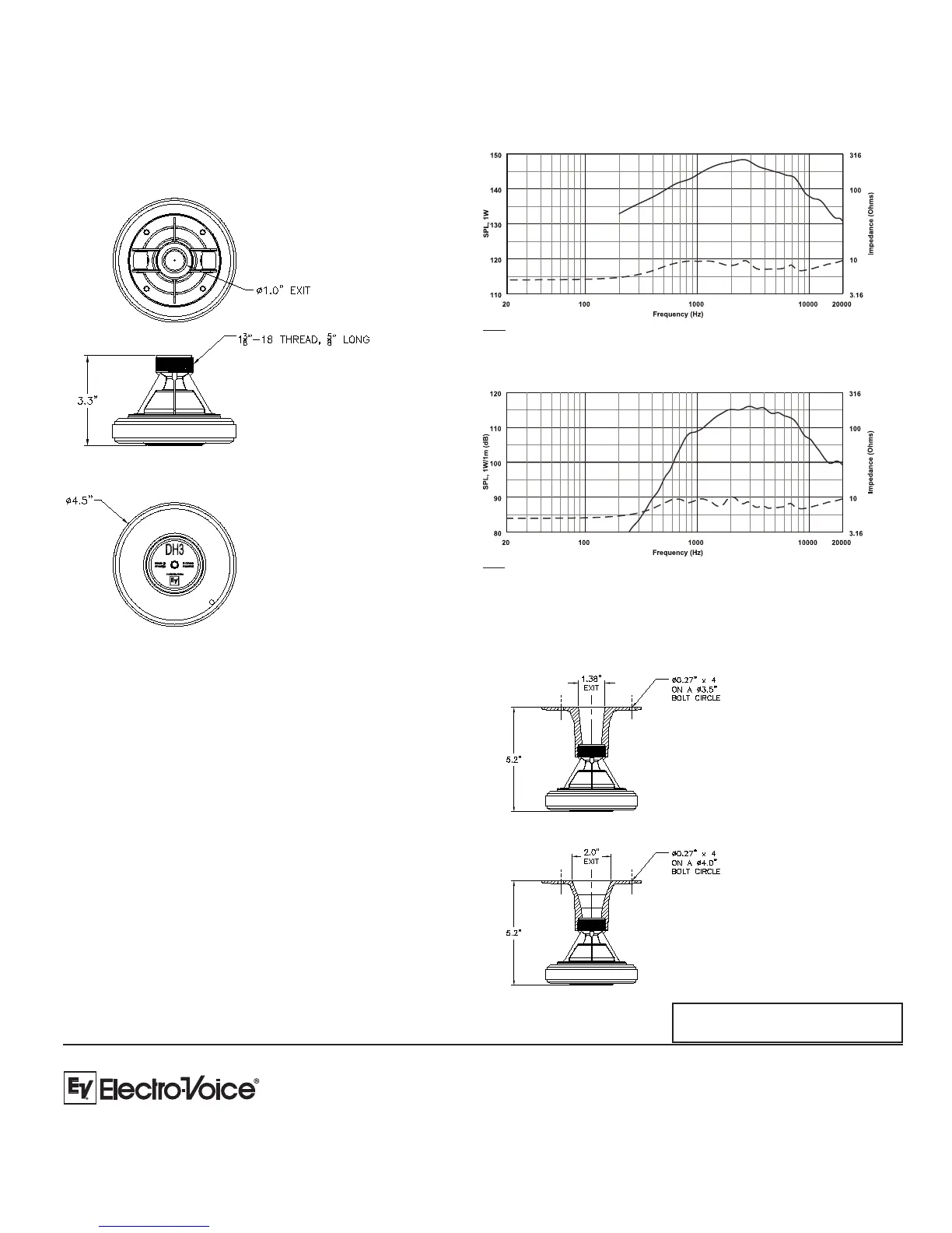 Note: Frequency response and impedance of the DH3/2010A driver attached to an HP64M