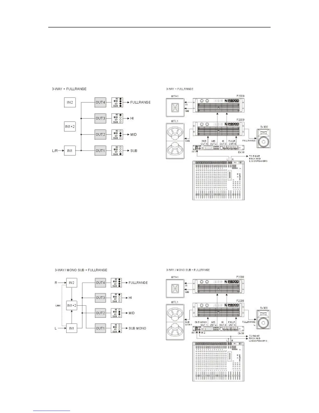 rooms. The internal structure of the 3-Way / Mono Sub + Fullrange configuration is shown in the following