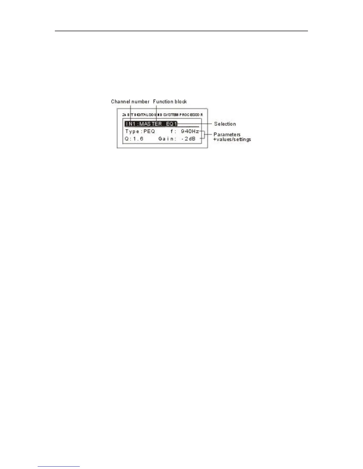 while the function block (MASTER EQ, MASTER DELAY, CHANNEL EQ, etc.) is shown next to the