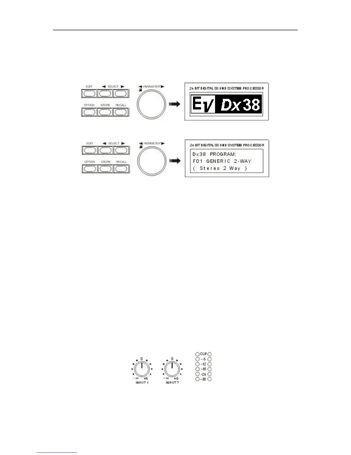 operation. The configuration is stereo 2-way - the initial state of the Dx 38 when shipped from the factory.
