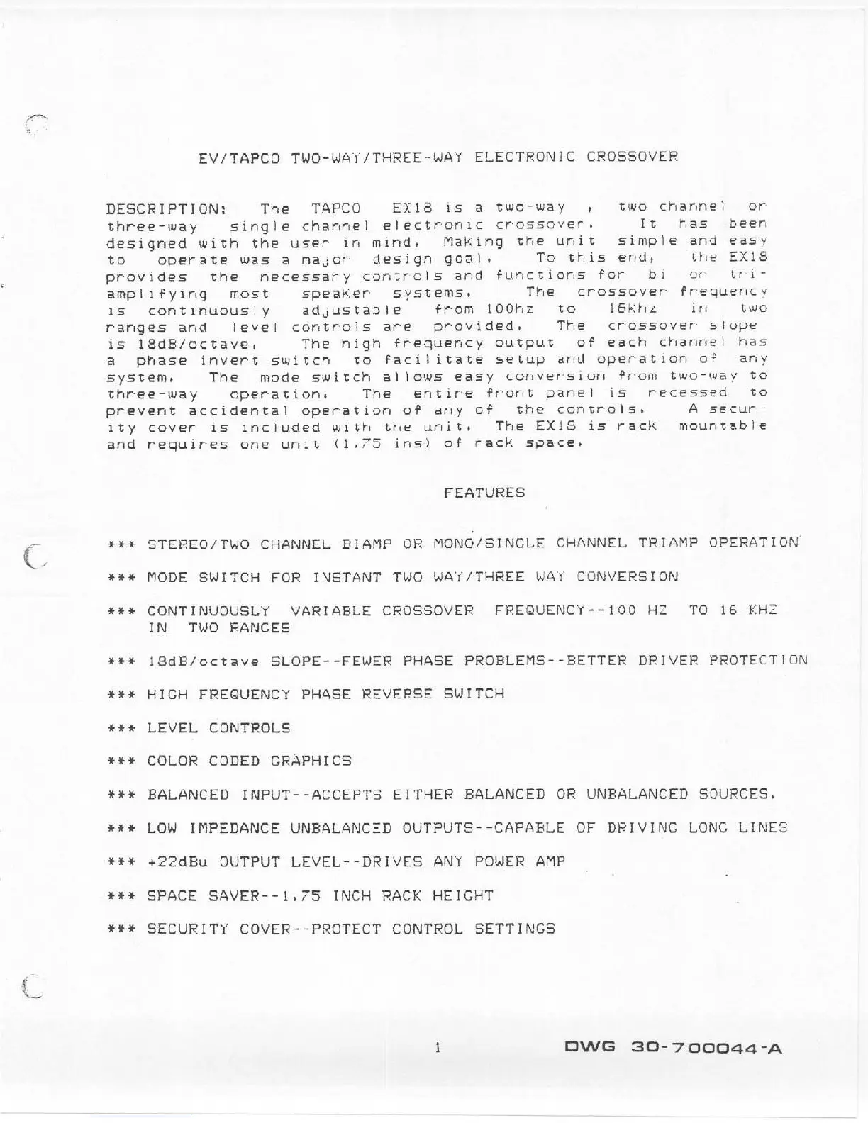 Electro-Voice Electronic Crossover EX-18 - Features